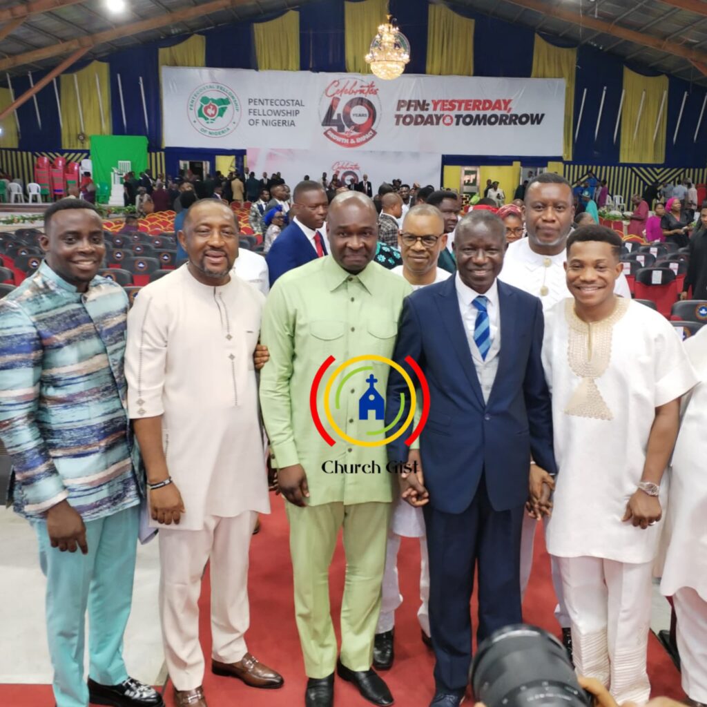 PFN AT 40: PFN National President, Bishop Wale Oke with Apostle Joshua Selman, Pastors Jerry Eze, George Izunwa and Daniel Olawande at the 40th Anniversary Of PFN