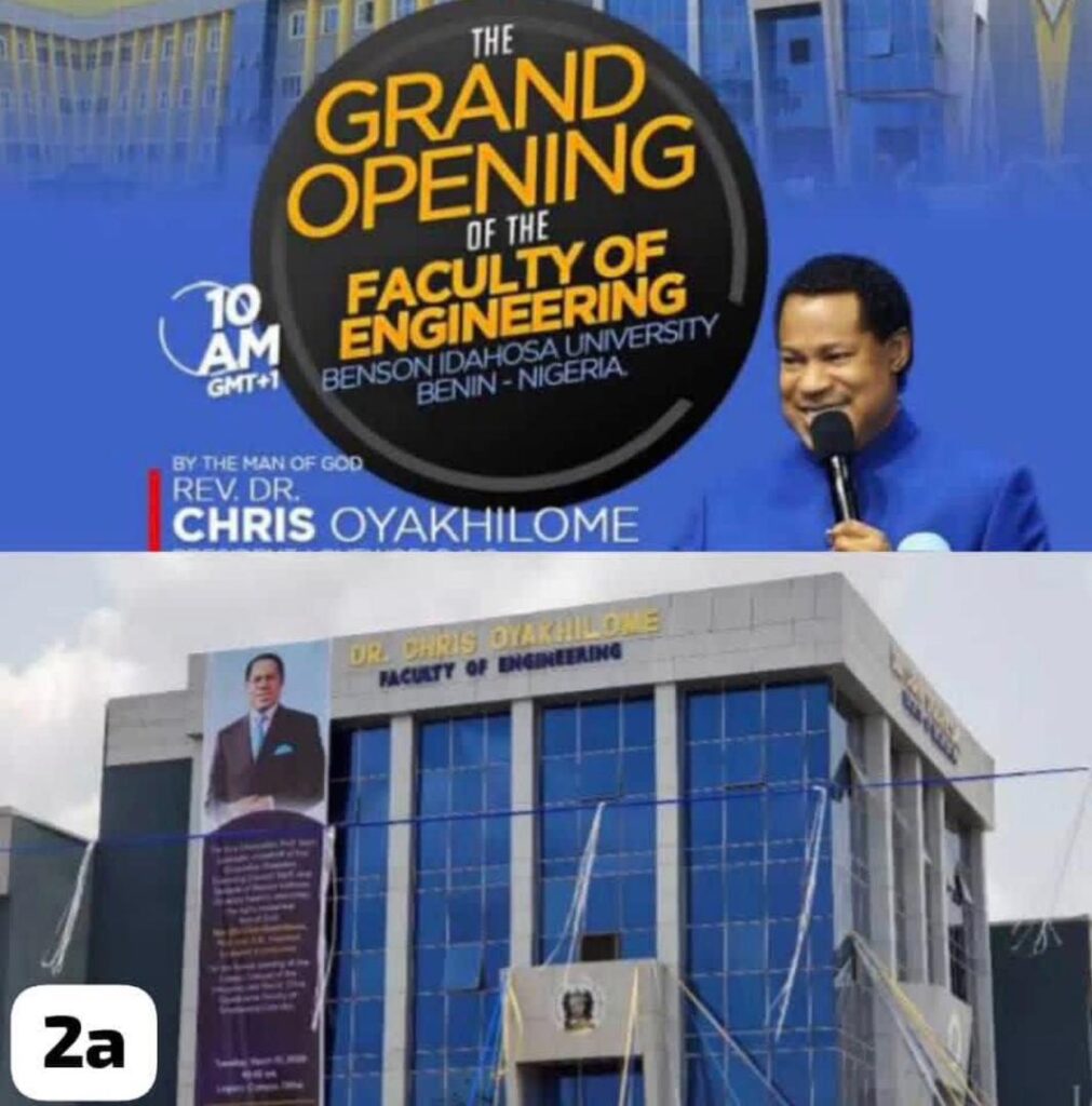 10th March 2020: Reverend Dr. Christian Oyakhilome, President of LoveWorld Inc officially opens the one-billion-naira faculty of engineering he donated to Benson Idahosa University on 23rd October, 2015.