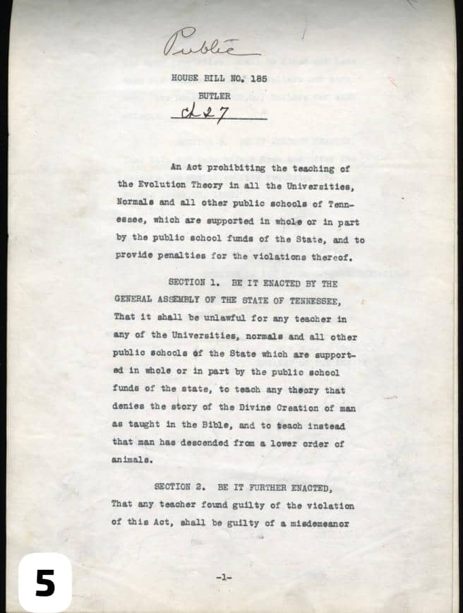13th March 1925: Austin Peay, Governor of Tennessee, signs the “Butler Bill,” prohibiting any teaching that contradicts the Genesis creation story.
