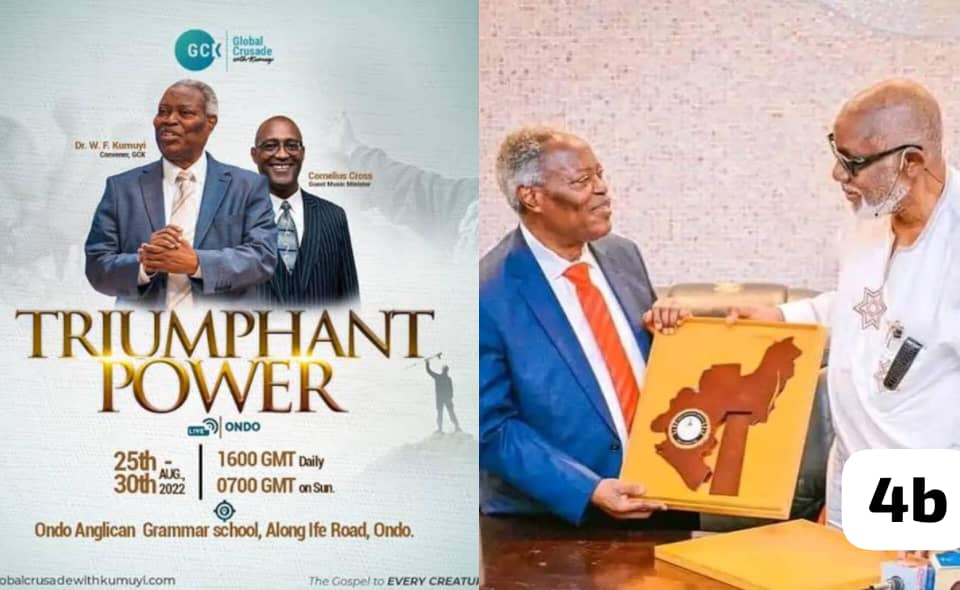 25th August 2022: Pastors W.F. and Mrs Esther Kumuyi arrive in Ondo State, Nigeria for the Ondo Global Crusade tagged: ‘The Triumphant Power’. After his arrival, he paid a courtesy visit to the Governor of Ondo State at the time, Rotimi Akeredolu at the Ondo State Government House. The Crusade was held from Thursday 25th to Tuesday 30th August 2022.