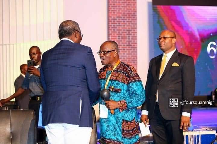 REV. SAM ABOYEJI WELCOMES FORMER FOURSQUARE PASTOR, MATHEW ASHIMOLOWO TO THE 66TH ANNUAL NATIONAL CONVENTION OF FOURSQUARE GOSPEL CHURCH.