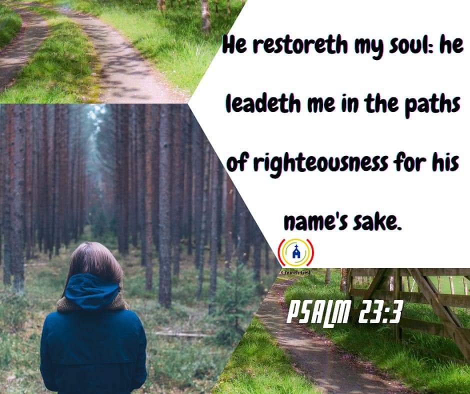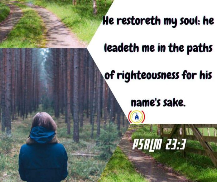Quick Reads WORD For Today By ChurchGistAdmin - March 23, 2021 0 470 FacebookTwitterWhatsAppEmailTelegram Psalm 23:3 He restoreth my soul: he leadeth me in the paths of righteousness for his name’s sake. #WordForToday #ChurchGist